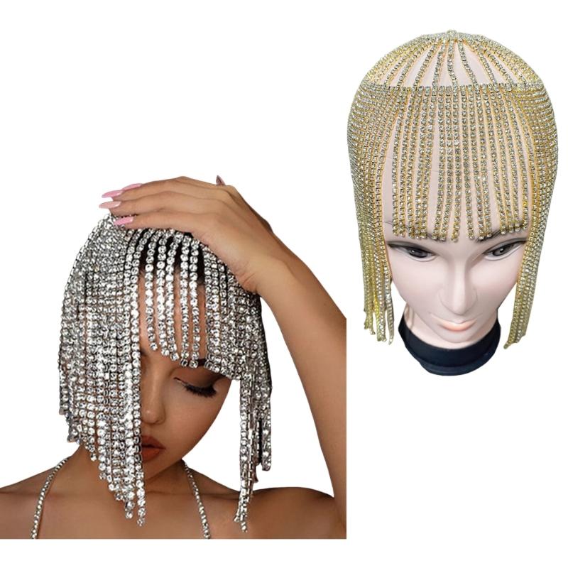 Böhmisk stil för strass dropphängande panna för huvudkedja kristall huvudstycke bröllopshårkedja för huvud J