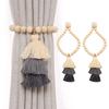 2 Pack Magnetic Curtain Tiebacks Wood Beads and Woven Rainbow Pendant Elegant Decorative Tie Backs for Drapes Window Curtains