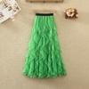 Women Spring Fall High Waist All Match Irregular Ruffle Mesh A Line Skirt