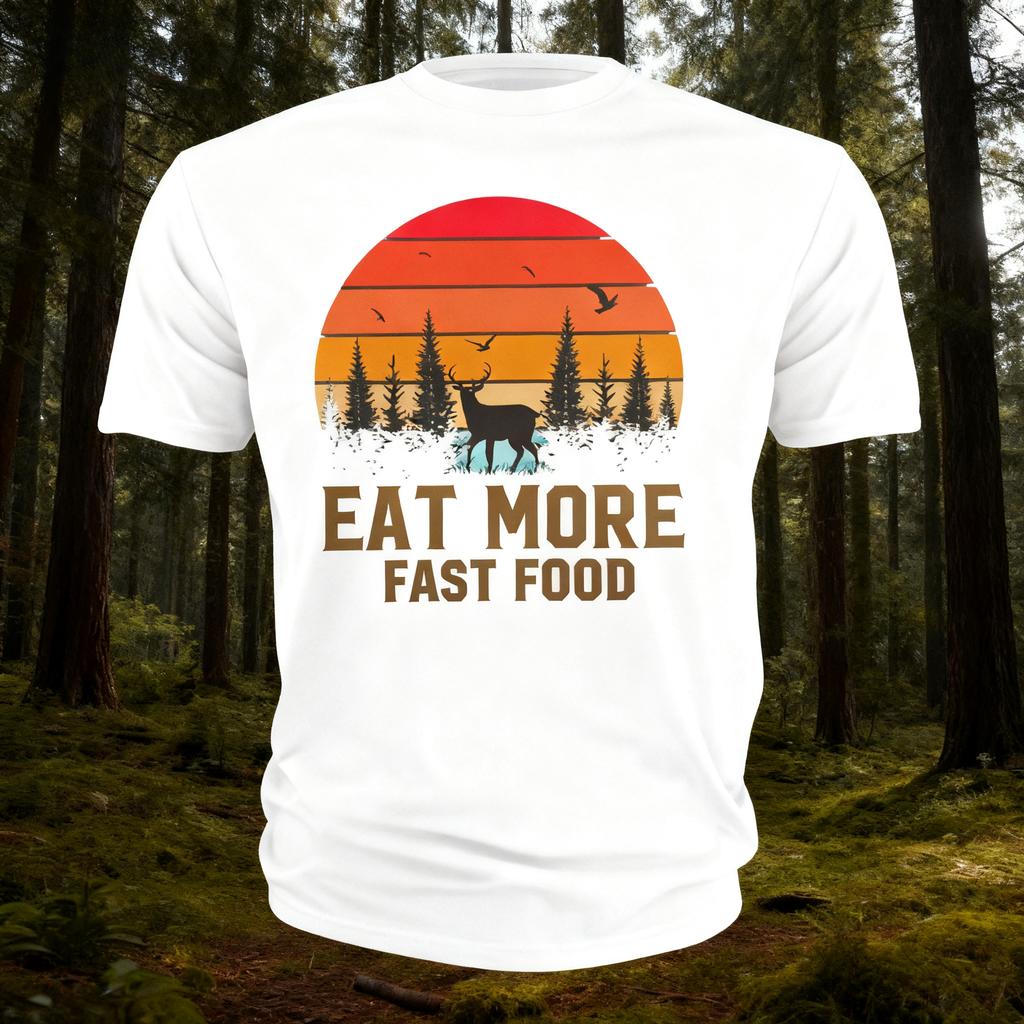 New Men's Funny Fast Food T-shirt, Fast Food Deer Hunting Funny Pun T-shirt, Women's Round-neck Casual Short-sleeved Shirt