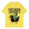 Sommar casual 100% bomull herr T-shirt, rolig kycklingjockeys grafisk tryckt T-shirt, herrars tecknad mode kortärmad T-sh