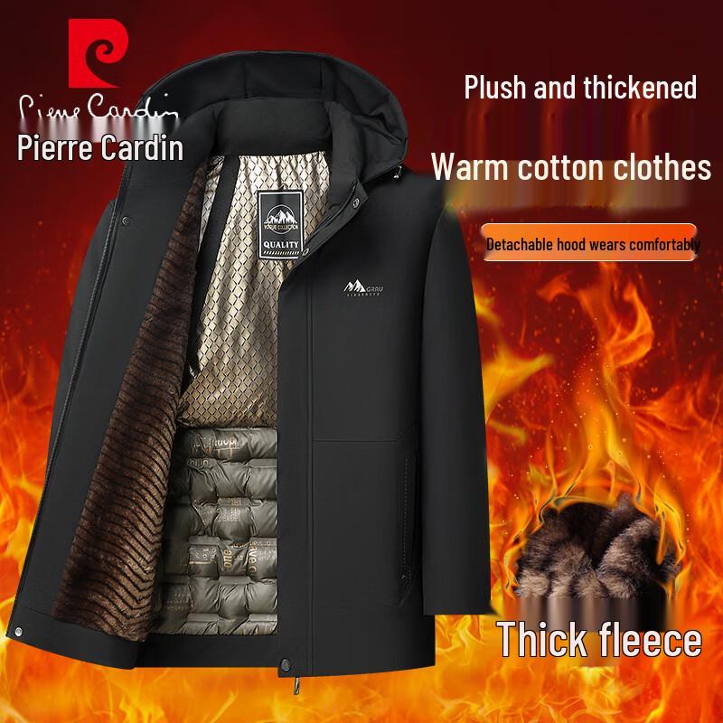 Pierre Cardin Men's Thickened Fleece-Lined Winter Jacket with Removable Hood