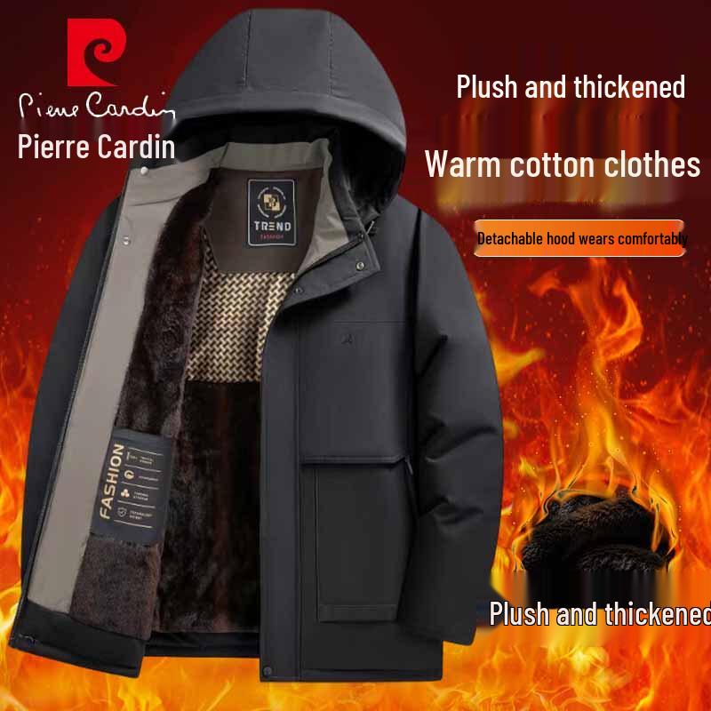 Pierre Cardin Men's Autumn/Winter Detachable Hood Fleece-Lined Jacket