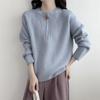 Lazy wind semi-zipper knitted bottoming shirt autumn and winter new high-end round neck pullover sweater women's outer top women