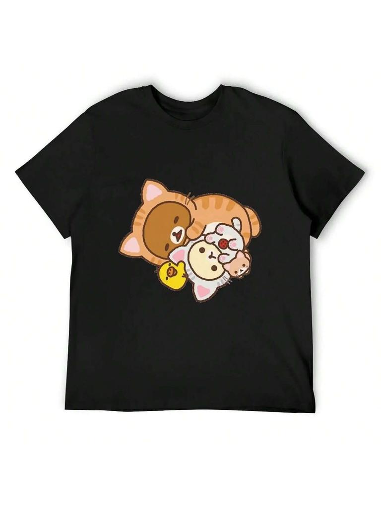 Rilakkuma Och Vänner Sovande Katt Kostymer T-Shirt Vintage T-Shirts Hippie Kläder Enkla Herr Grafiska T-Shirts Anime