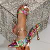 Mode Mode Flerfärgade Spetsiga Tofflor Kvinnor Sommar Sexiga Tunna Höga Klackar Tofflor Sandaler Kvinna Lyxdesigners Dam Pumps 2024