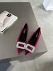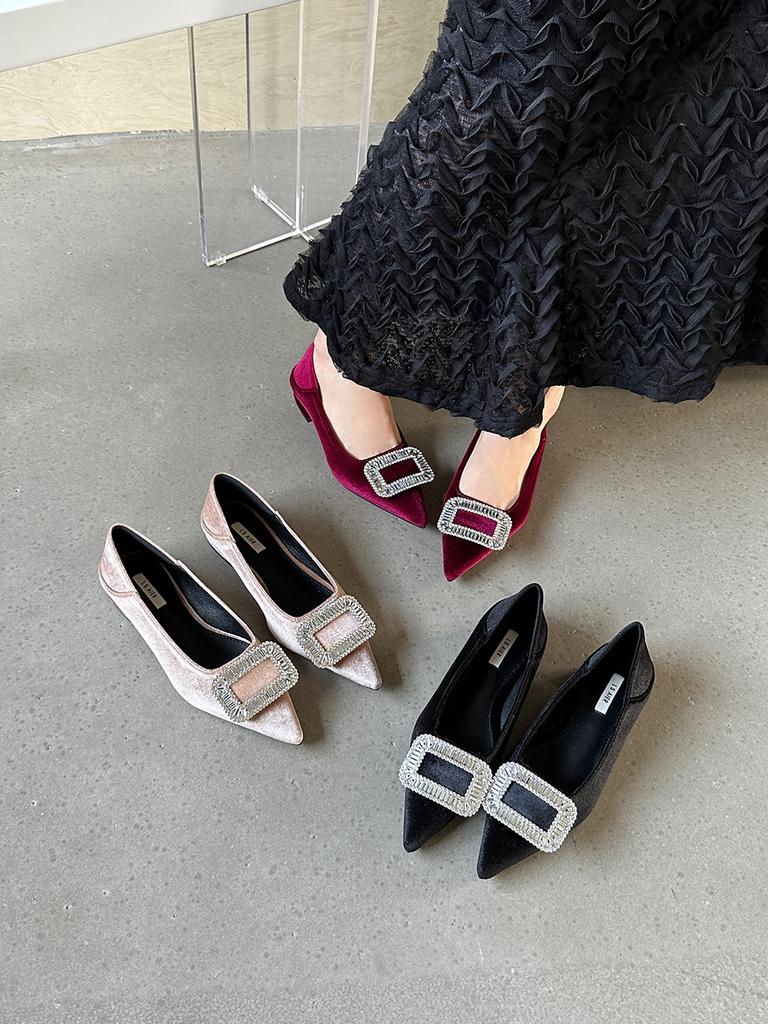 fashion Pointed Toe Women Flats Autumn Dress Shoes Low Heeled Rhinestone Buckle Beige/Wine red/Black Casual Daily Loafers Size 35-39