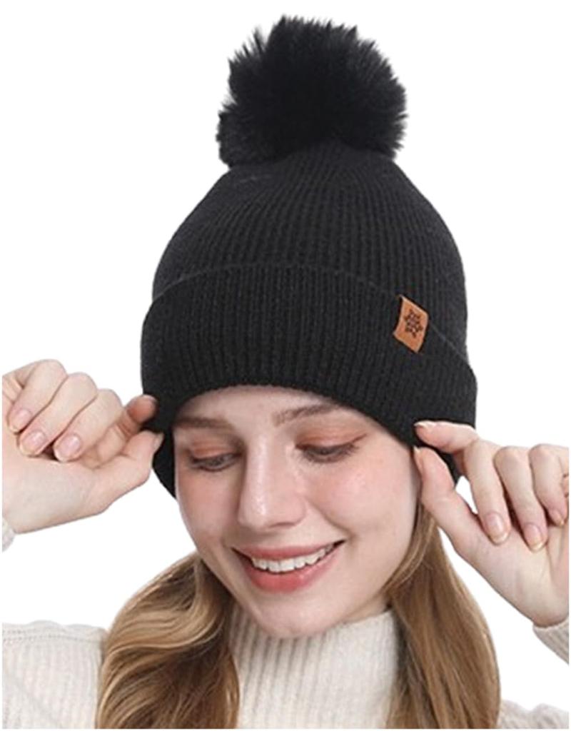 Knit Hat with Simple Thick Perfect for and Outdoor One Size Fits M-Sing Pom-Pom, Beanie, Winter, Warm, Fleece-Lined, Skiing, Golf, Snowboarding,