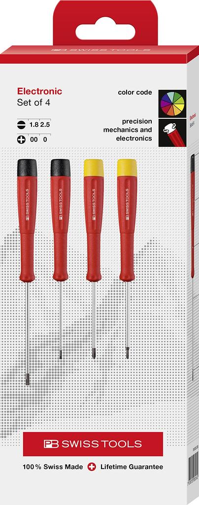 PB Swiss Tools SwissGrip Precision Flathead and Phillips Screwdriver Set in Paper 4-Piece Box, 8620.CBB