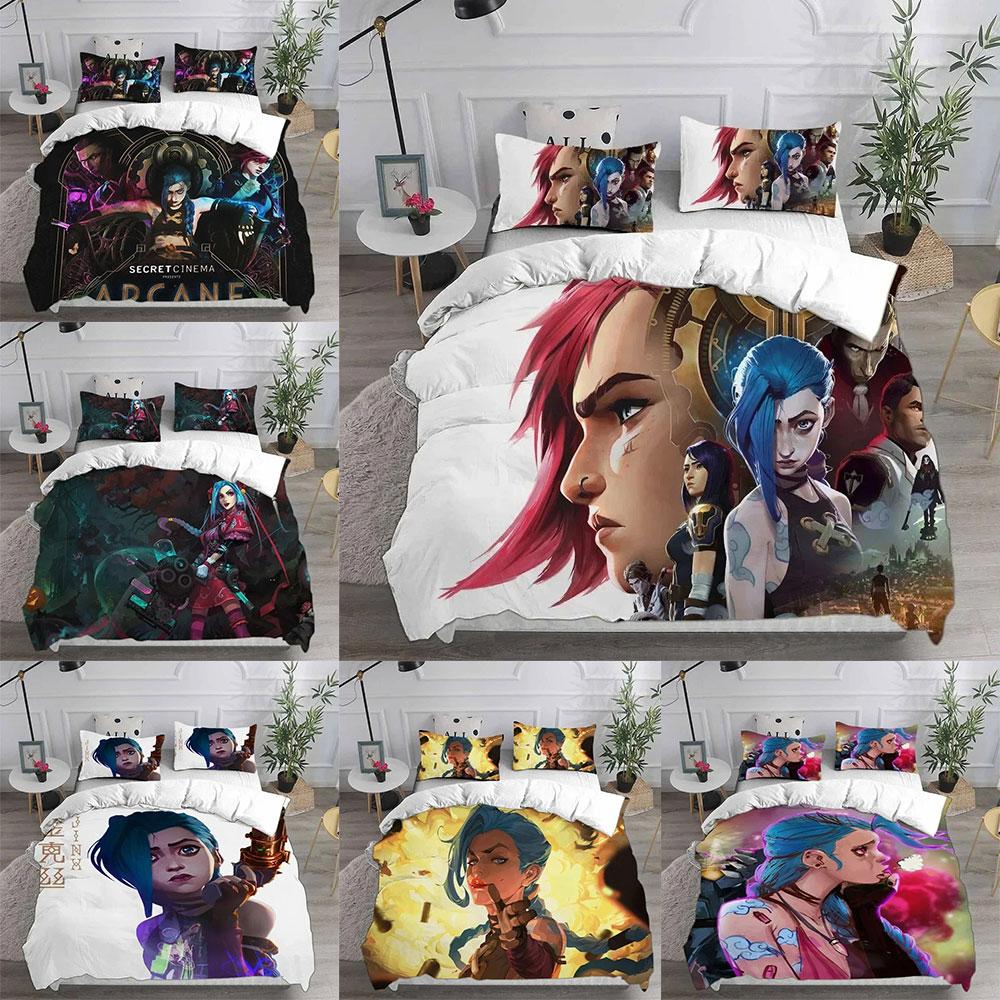 Jinx Arcane Bedding Sets Quilt Bed Cover Comforter Duvet Cover Pillow Case 2-3 Pieces Sets Kids Adult Bedroom Decoration