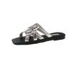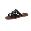 Mode Platta Sandaler Sommar Nya Fyrkantig Tå Öppen Tå Metallspänne Tunn med Mjuk Sula Halkfria Slitstarka Tofflor