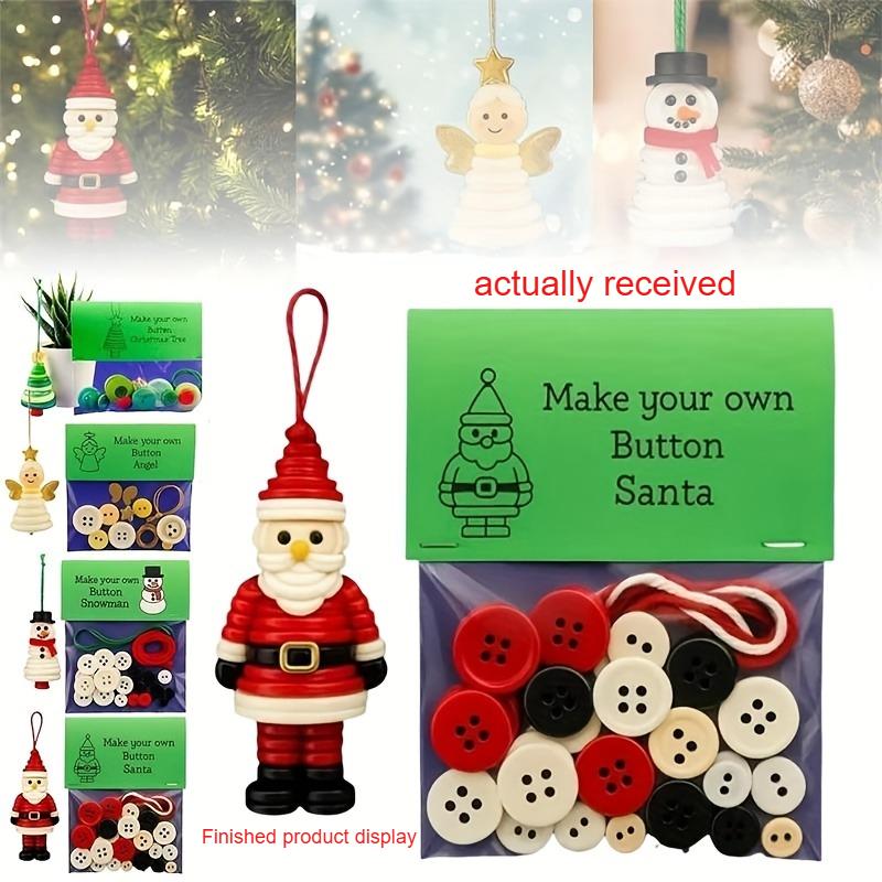 DIY Christmas Button Decoration Craft Kit - Snowman, Santa Claus, and Angel Figures with Button Hats,Easy-to-Hang Tree Ornaments
