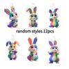 12 st Färgglada Påskhare Hängande Ornament-Regnbågsrandiga Träkanindekorationer till Påsk, Väskberlocker&Festlig Heminredning