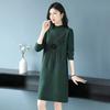 Klänning för kvinna Bomull Vinter Varm Rund hals Lång ärm Vintage Casual Tryckt Lång Stretch Stickad Tröjklänningar