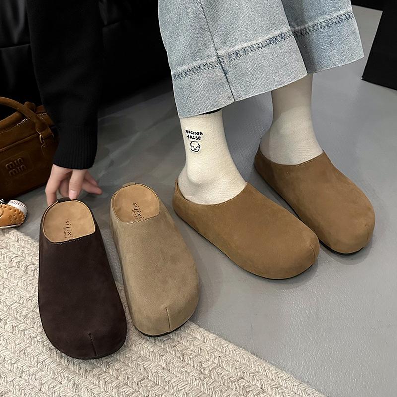 Damväska i läder med tjocksula och haltofflor, bärande nya vår- och sommarskor för damer, lata enskor