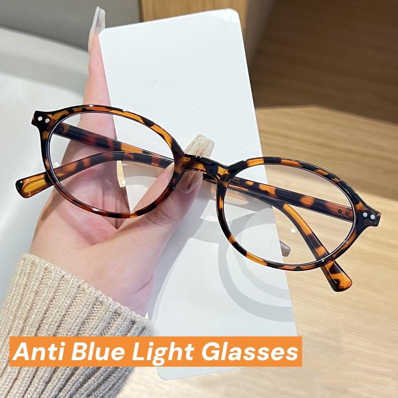 Korean Retro Oval Frame Blue Light Blocking Glasses Women Men Fashion Trendy Anti Blue Ray Plain Eyewear Decorative Eyeglasses