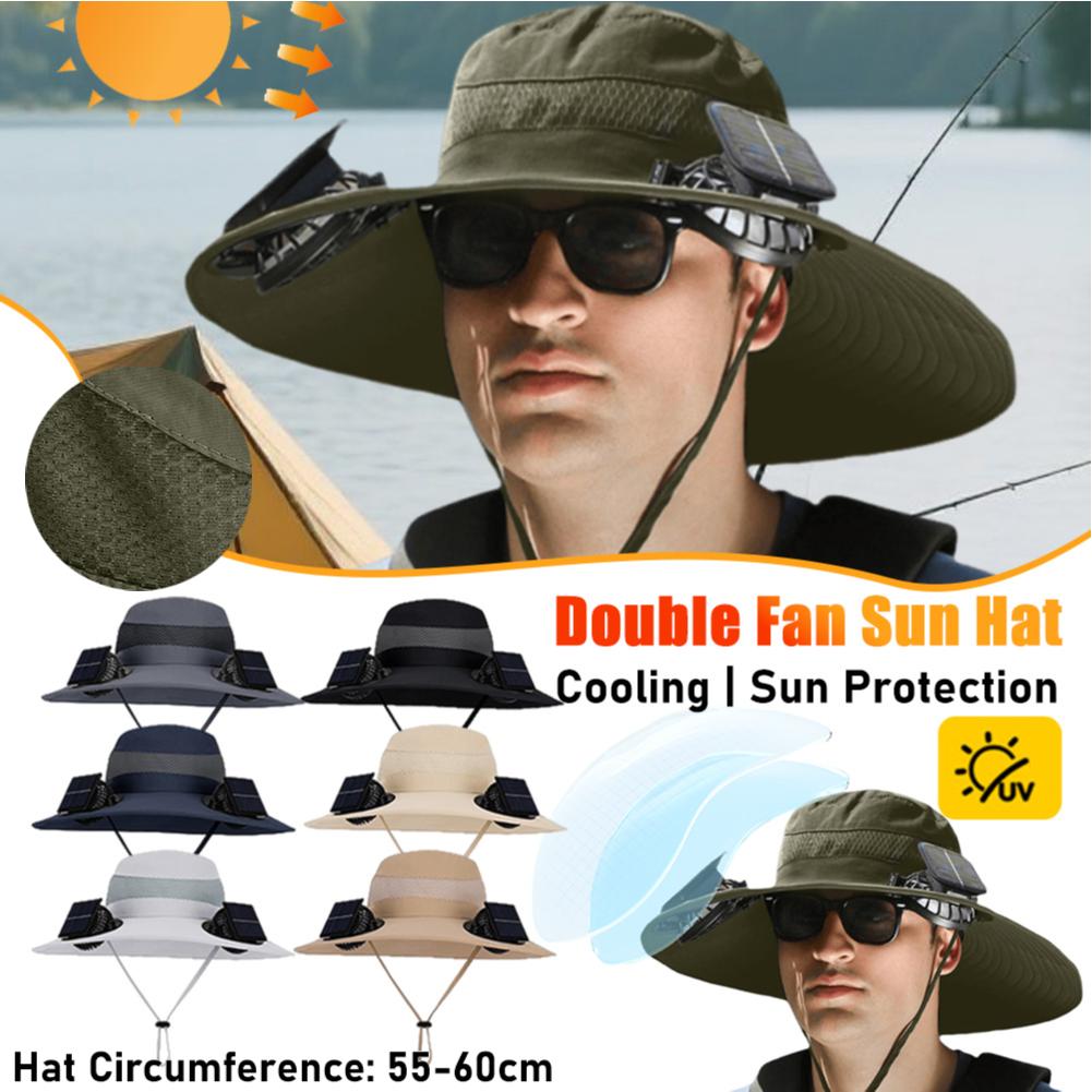 Sunscreen Fisherman Hat Solar Fan Cap Portable Solar Charging Cap with 2 Fan Suitable For Summer Outdoor Camping Fishing Hiking