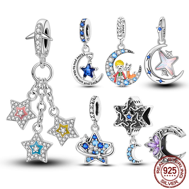 Copper Colorful Charms Beads Stars Moon Dangle Fit Original Bracelet Women Jewelry Gift Diy