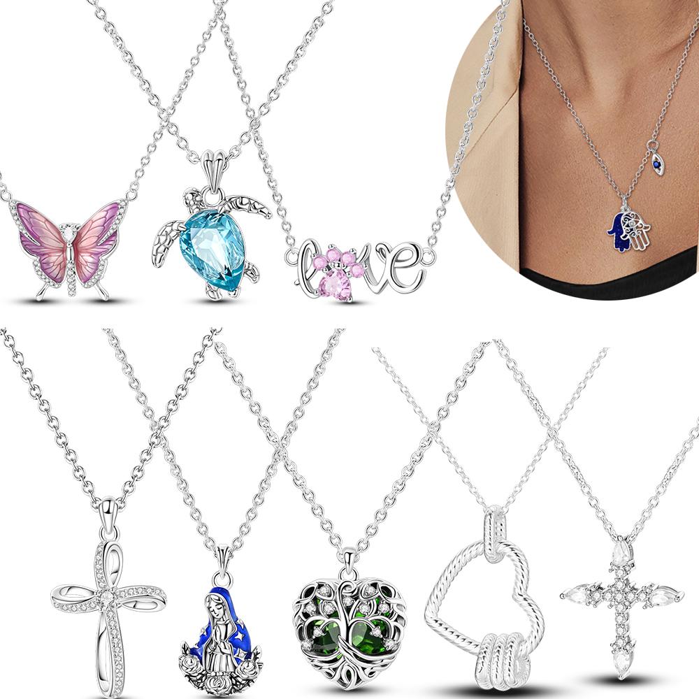 Butterfly Necklace Copper Original Cross Heart Love Zircon Pendant Chain Link For Women Fine Jewelry Gift Party