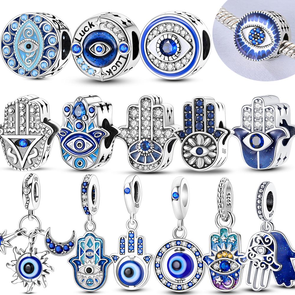 Nytt I Koppar Berlocker Pärlor Dröm Djävulens Öga Fatimas Hand Kors Berlocker Hänge Passar Original Armband Dam Smycken Gåva Diy