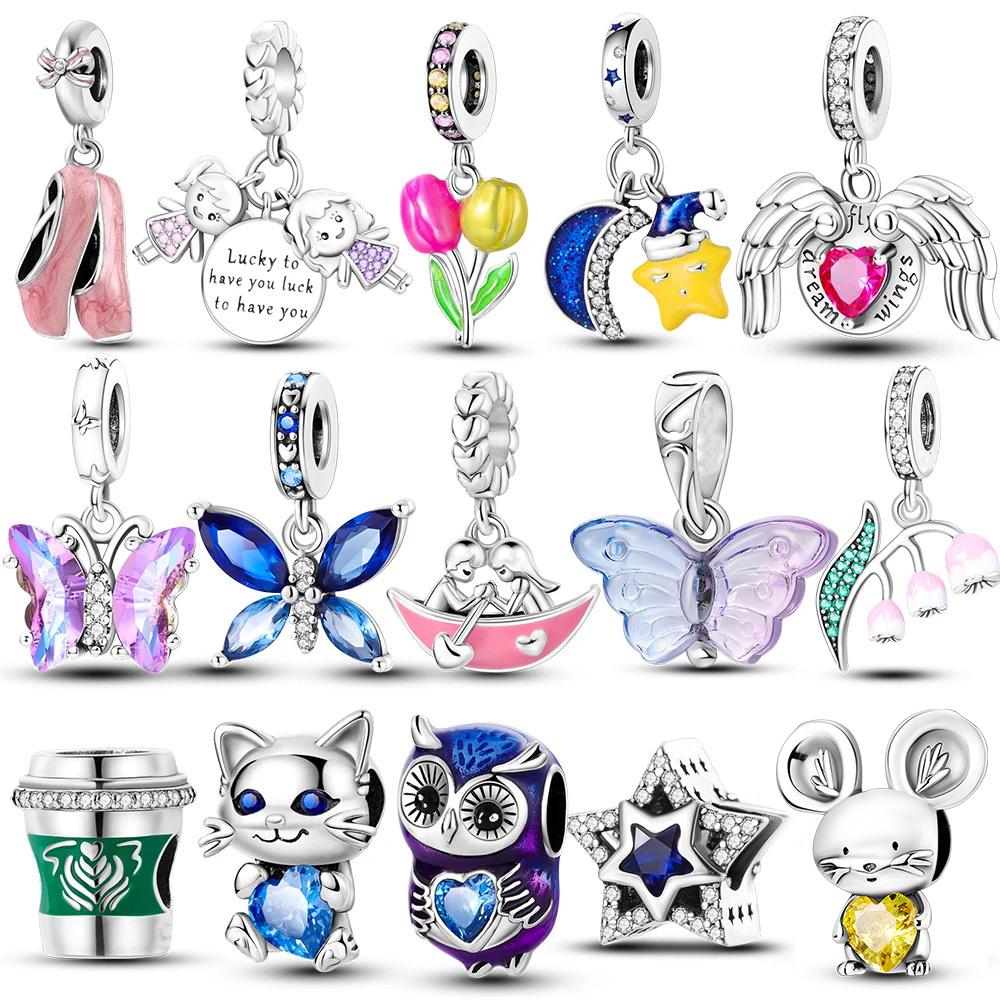 Copper Plated Charms Butterfly Owl Flower Charms Beads For Women Fit Original Bangle Bracelet Diy Jewelry Marking Diy