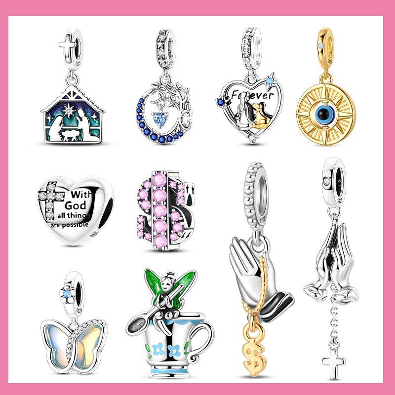 Religious Series Original Charms Beads Copper Prayer Hand Activities Pendant For Woman Fit Bracelet Making Jewelry Diy Gift