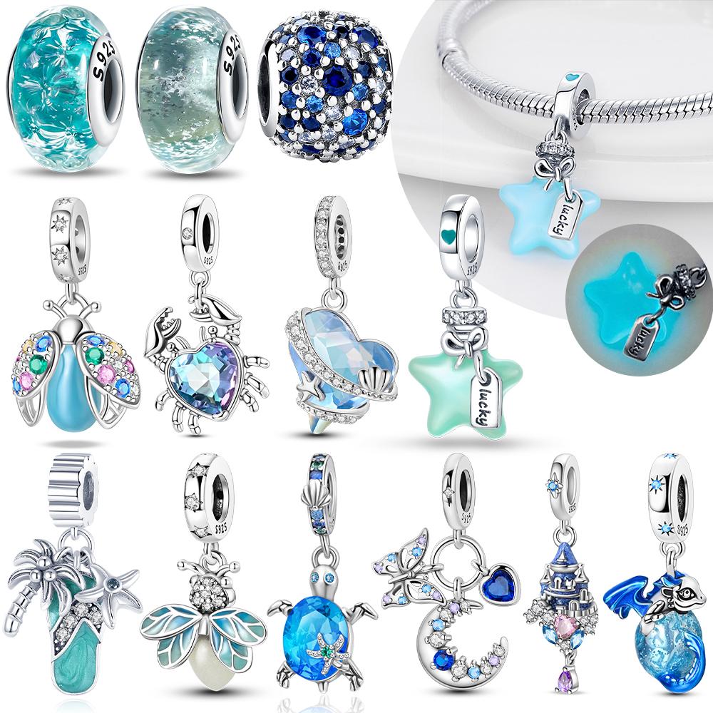 Charms Copper Blue Original Stars Heart Zircon Chameleon Panda Glass Beads Fit Bracelet Jewelry Women Diy Accessories