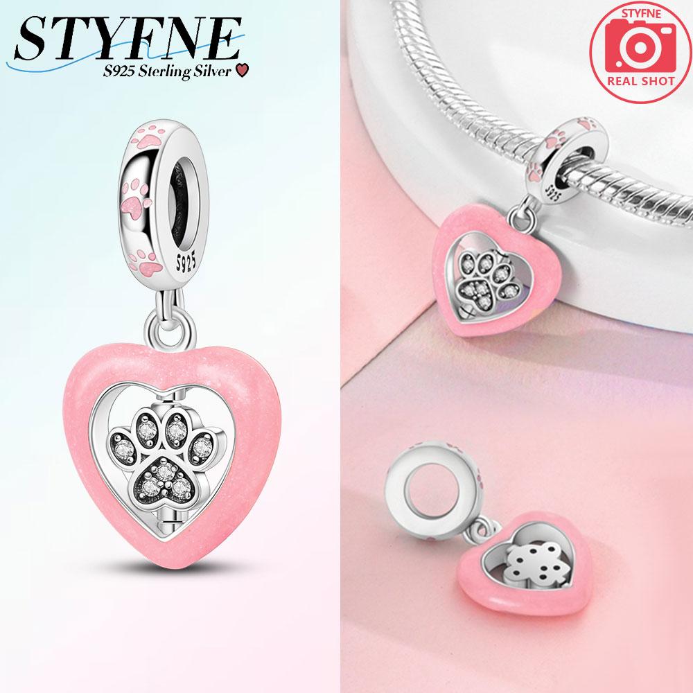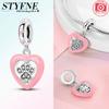 Charms Copper Cute Pink Dog-Paw Heart-Shaped Pendants Fit Charms Plata Original Bracelet Women Jewellery Making Gifts