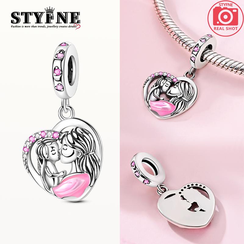 Charms Plata Pink Motherly Love Heart-Shaped Pendants Fit Original Bracelets Charms For Women Jewelry Diy Making Gifts
