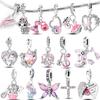 Pink Series Beads Copper Bear Love Bike Dance Shoe Charms Fit Original Bangle Bracelet Pendants Diy Jewelry Gift For Women