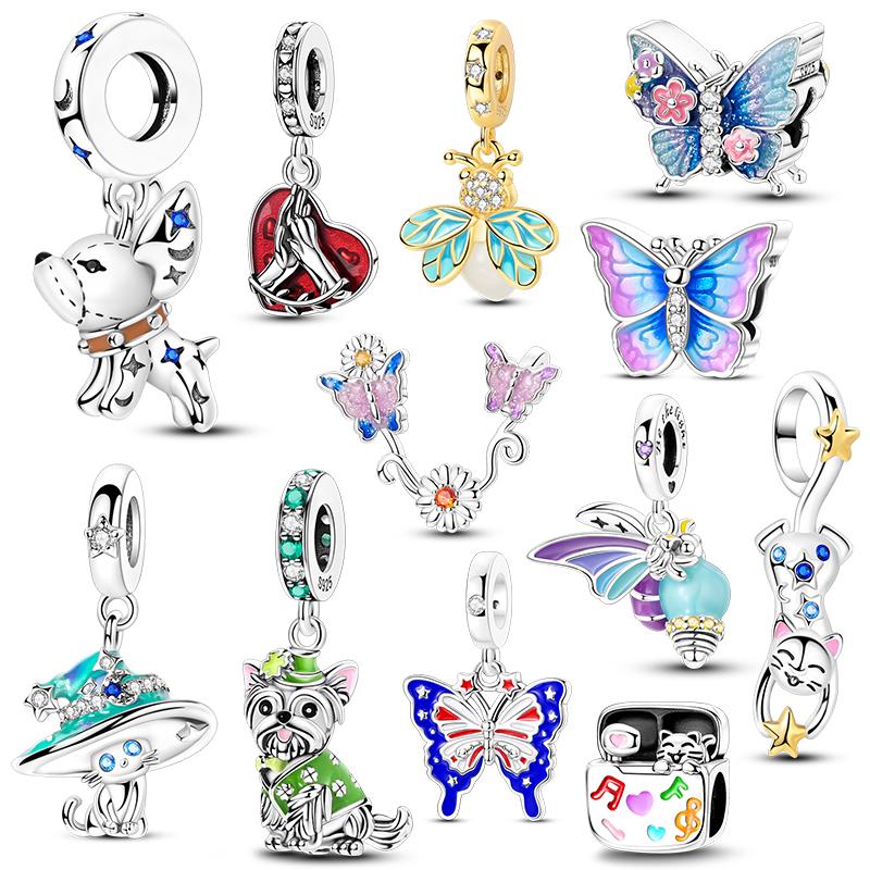 Fit Original Bracelet Copper Charms Butterfly Cute Dog Cat Beads Pendant Dragonfly Chain For Women Gift Diy Jewelry