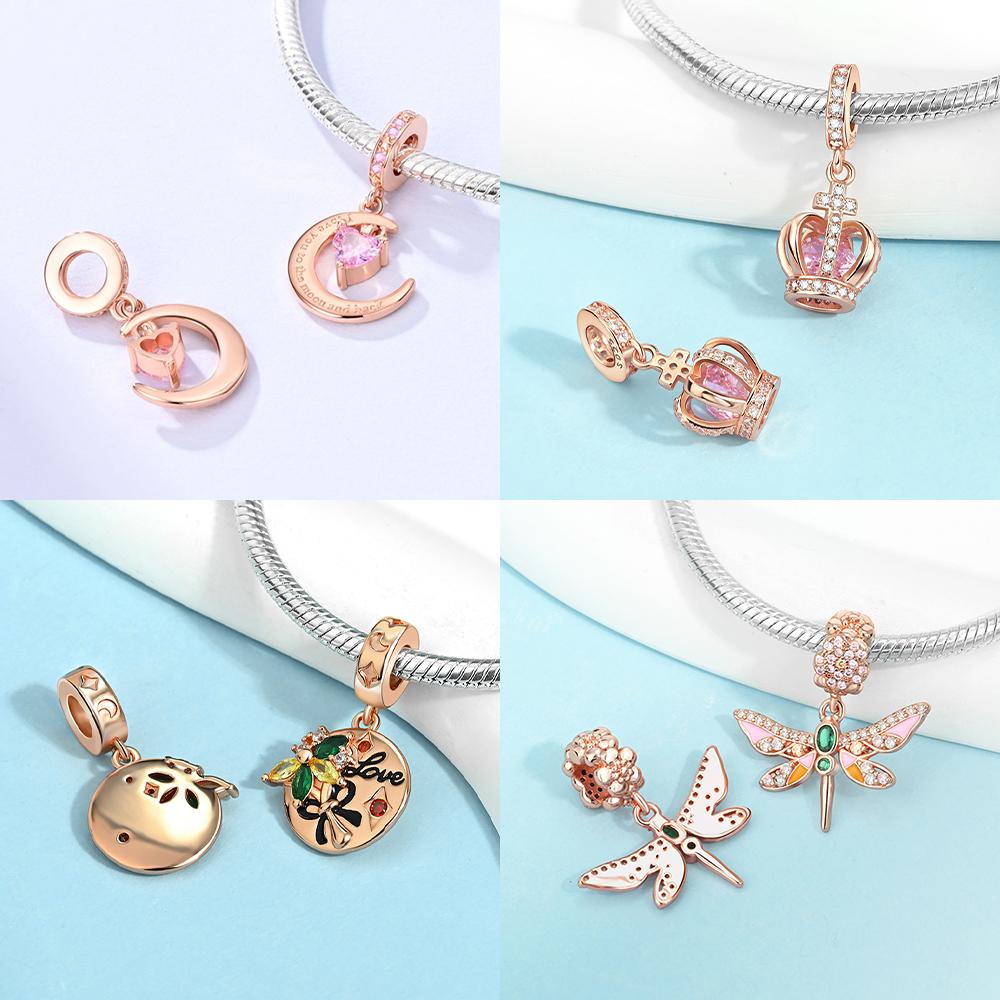 Original Koppar Roséguld Kärlekshjärta Fjäril Luftballong Berlocker Pärlor Passar Armband Dam Smycken DIY-tillbehör Gåva