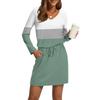 Dammode V-ringad Långärmad Dragsko Med Ficka Randigt Tryckta Vardagsklänningar