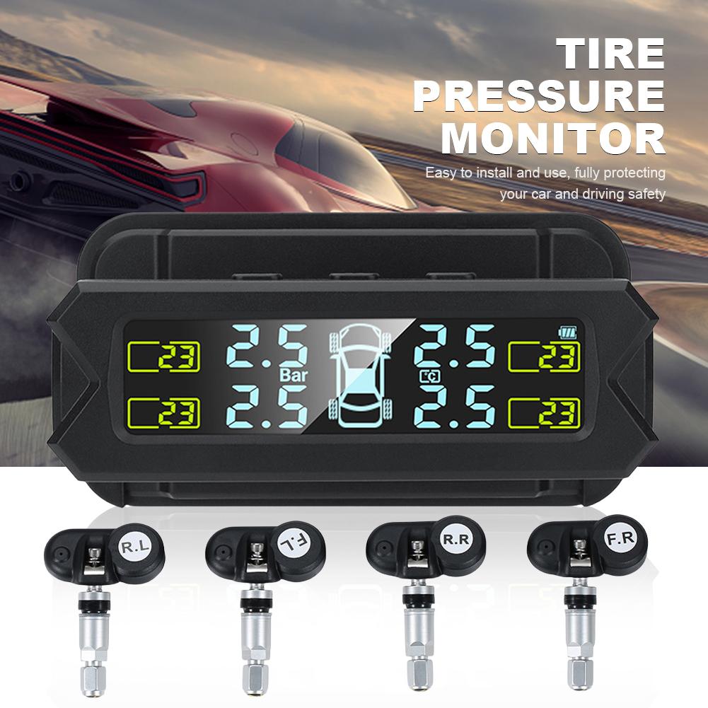 Solar Tire Pressure Monitoring System High Precision Digital TPMS LCD Display Digital Tire Pressure Sensor Security Alarm 400mAh