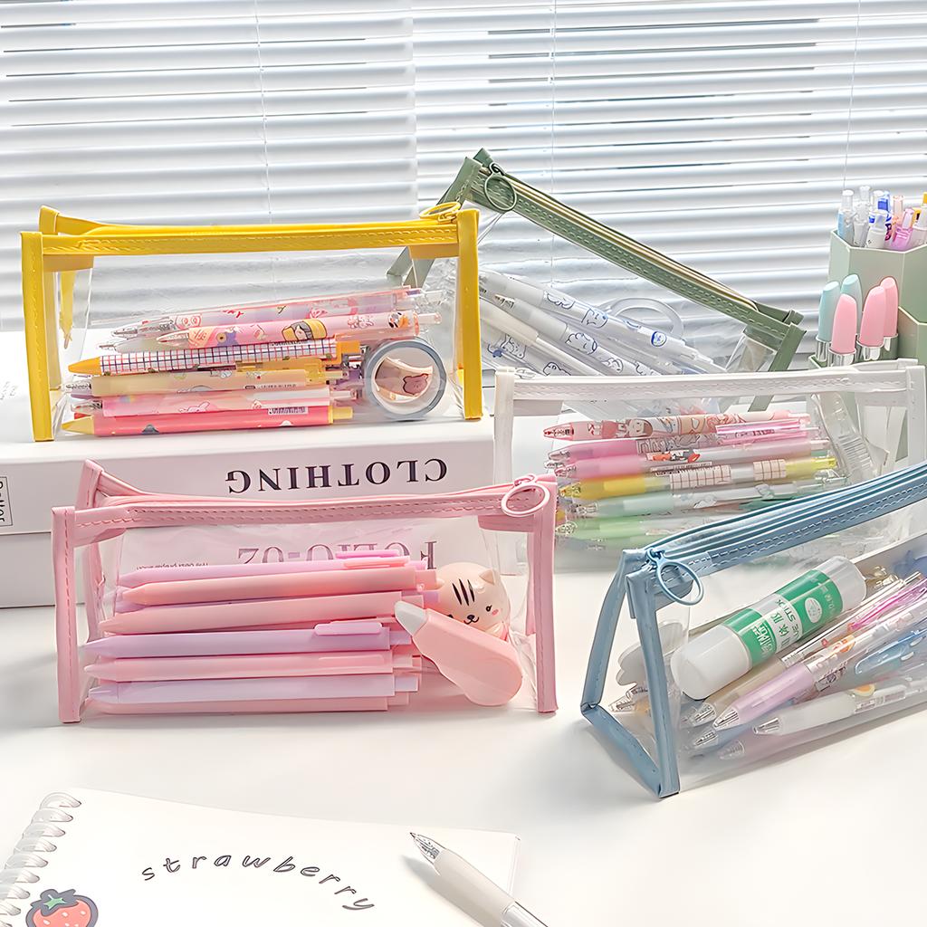 Clear Pencil Pounch Pen Case,Waterproof Toiletry Cosmetic Makeup Bag, Multifonction Stationery Organizer for Students Adults Te
