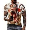 Herr T-shirt med tecknad anime-stil, 3D-tryckt, rund hals, kort ärm, lös, vardaglig, bekväm, sommar