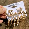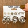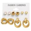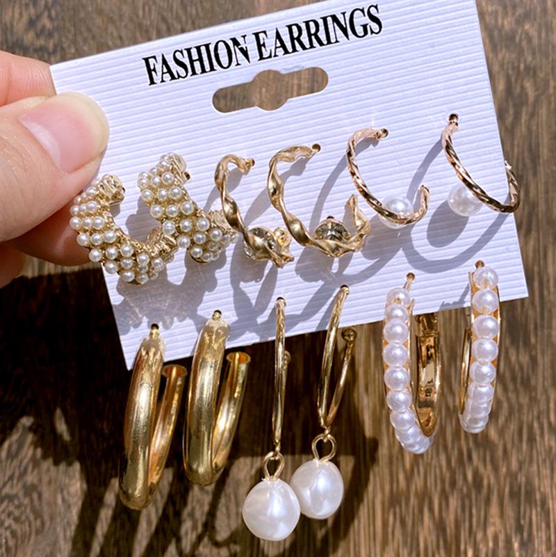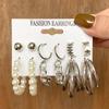 Inlagda pärlörhängen för kvinnor: Kreativ Fransk Retro Guldringar Set (6 stycken)