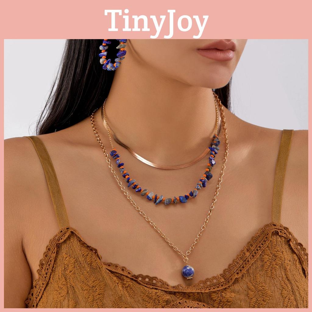 Vintage Style Crushed Stone Plated Locking Necklace And Earrings Set For Female Fashion Enthusiasts