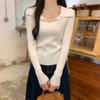 A short drawstring waist polo collar long-sleeved knitted sweater women's spring and autumn bottoming shirt top