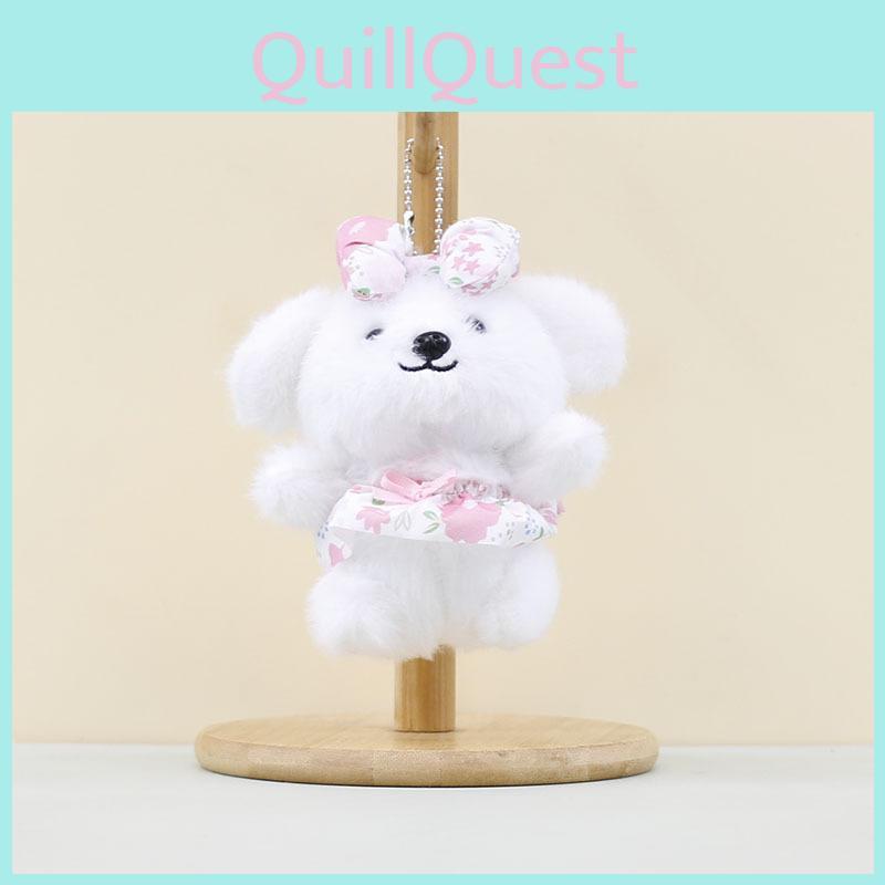 Soft And Cuddly Plush Dog Doll With Lovely Bowknot Perfect For Keychain Or Bag Accessory