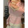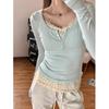 Dam Vår Blommig Patchwork Långärmad T-shirt Design Smickrande Spetskläder