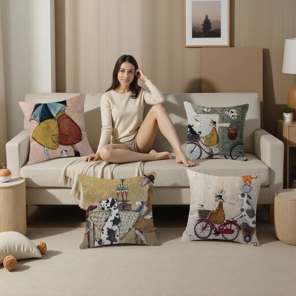 Sam Toft Konst Abstrakt Landskap Kärlek Hundar Kuddfodral Tecknad Gåva Kuddöverdrag Sovrum Hem Soffa Stol Sits Dekor Kuddvar