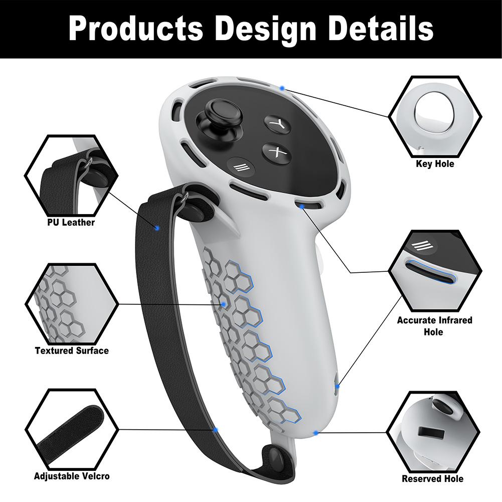 Silikon Greppskydd Skydd Anti-Repa Kontroller Greppskydd Anti-Halk DammTät Justerbar Handledsrem för Oculus Quest 3