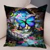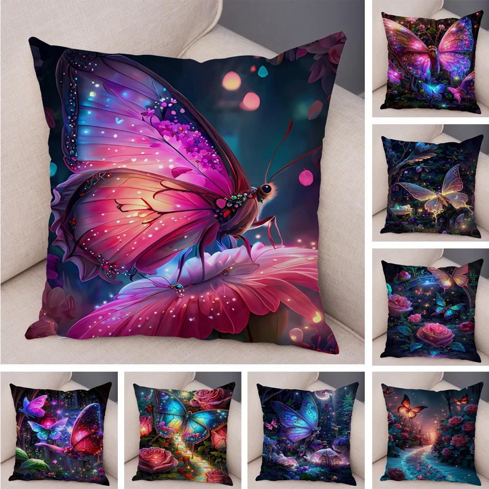 Tecknad Blomma Fjäril Djur Kuddfodral Dekor Blomma Kuddfodral för Soffa Hem Bil Fantasi Skog Mjuk Plysch Kuddfodral