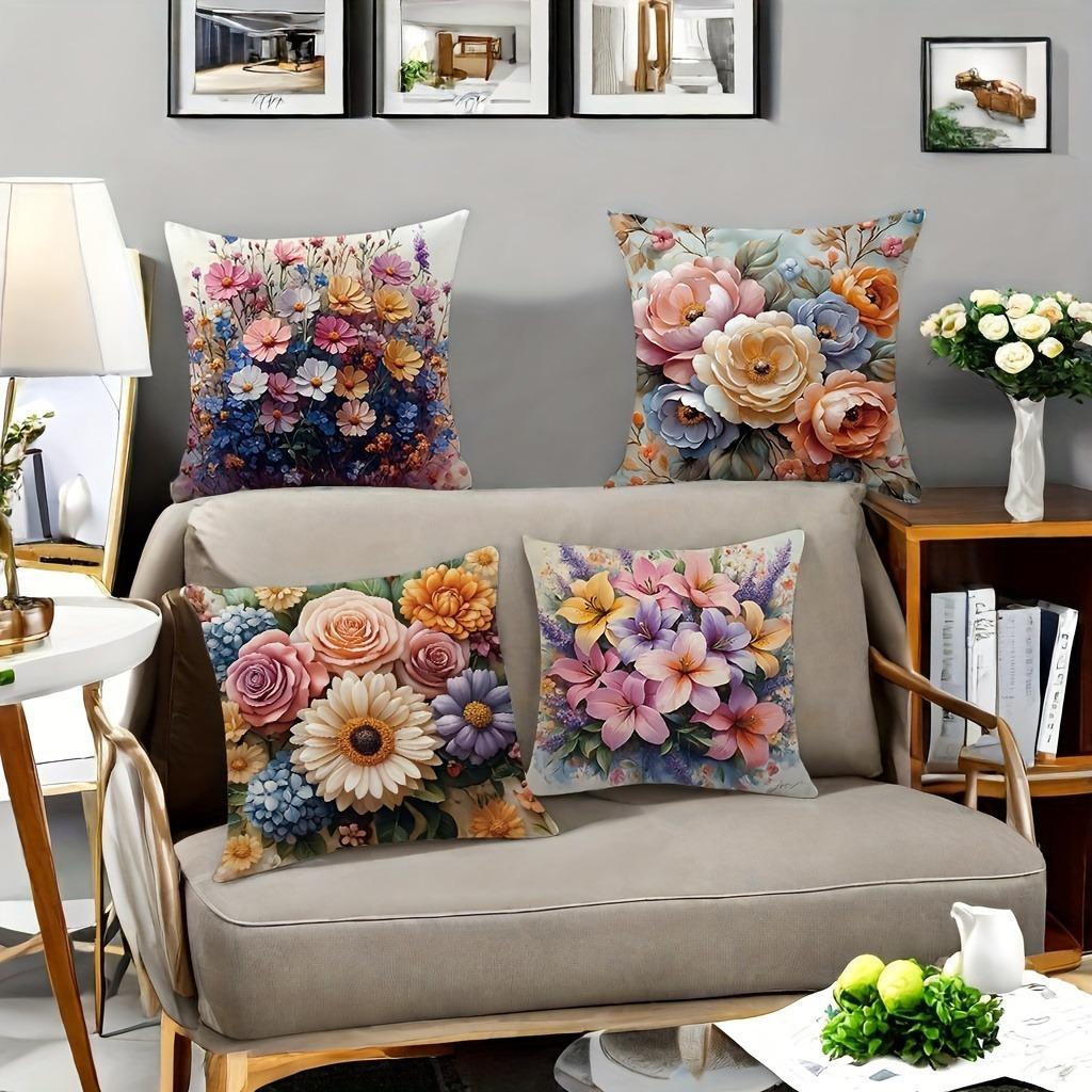 Fräsch lantlig design ros, lilja och liljemönster örngottLämplig för soffa bil sovrum dekorativt kuddöverdrag kuddfodral