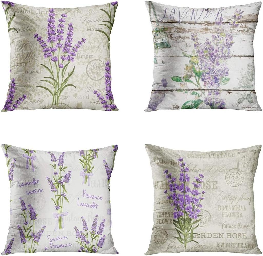 Flowers Lavender Linen Pillowcase Wedding Decorative Pillow Case For Home Pillow Cover 45X45(One Sides)
