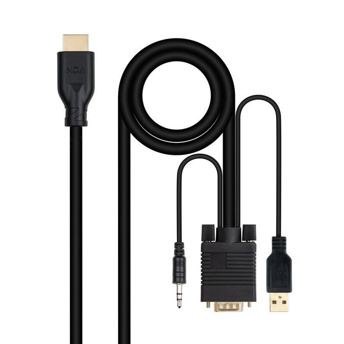 Convertisseur VGA vers HDMI - Nano Cable - 1,8 m - Noir - 1920x1080@60Hz - Audio Jack 3,5 mm - USB-A pour alimentation