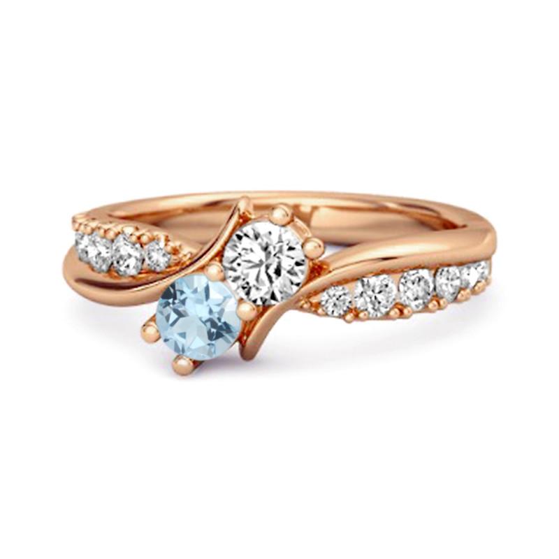 925 sterling silver ring with 3mm Blue Topaz & White CZ (0.42 Ct) on a pavé crossover band. A symbolic and stylish twin-stone design.