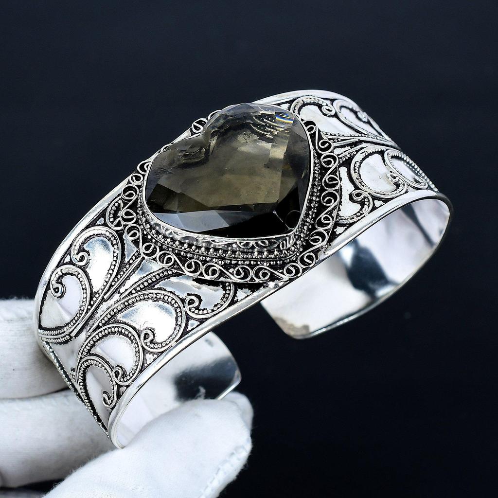 Smoky Topaz Heart Gemstone Bracelet, Bangle Adjustable Bracelet, 925 Sterling Silver Jewelry, Engagement Gift, Smoky Topaz Bracelet Birthday Gift