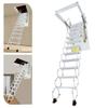 11 Steps Cold-rolled Steel Attic Ladder,70x100cm White/Blue Wall-Mounted Folding Stairs for Flat Roofs